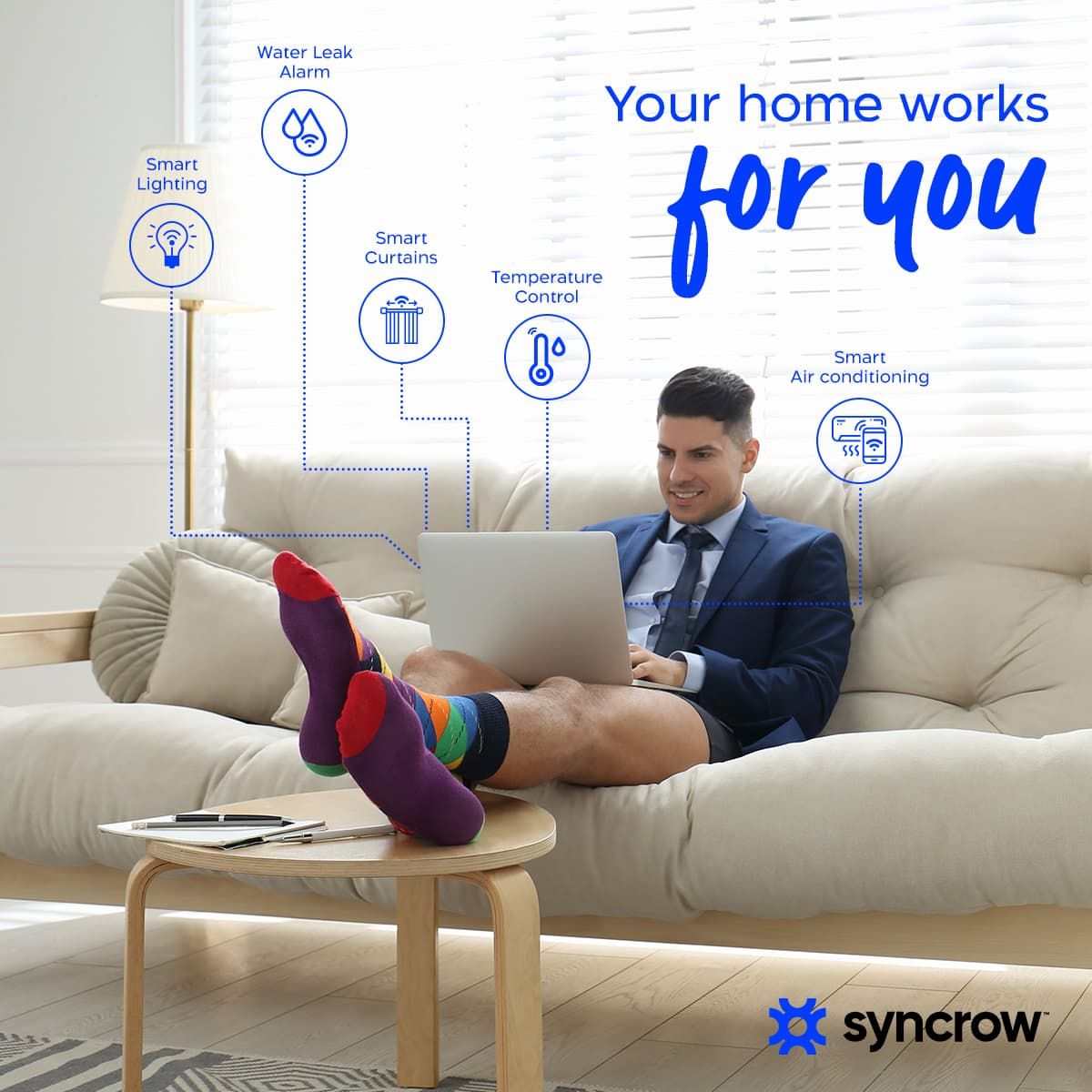It's often the little things that make life beautiful, and Syncrow's Home Automation empowers you to control your home environment with the touch of a button. Gain the ability to control your home and the power to set the mood, monitor energy usage, and enhance security with the convenience of a single click. Create an environment that ultimately brings you profit. Do it without wrecking your home.